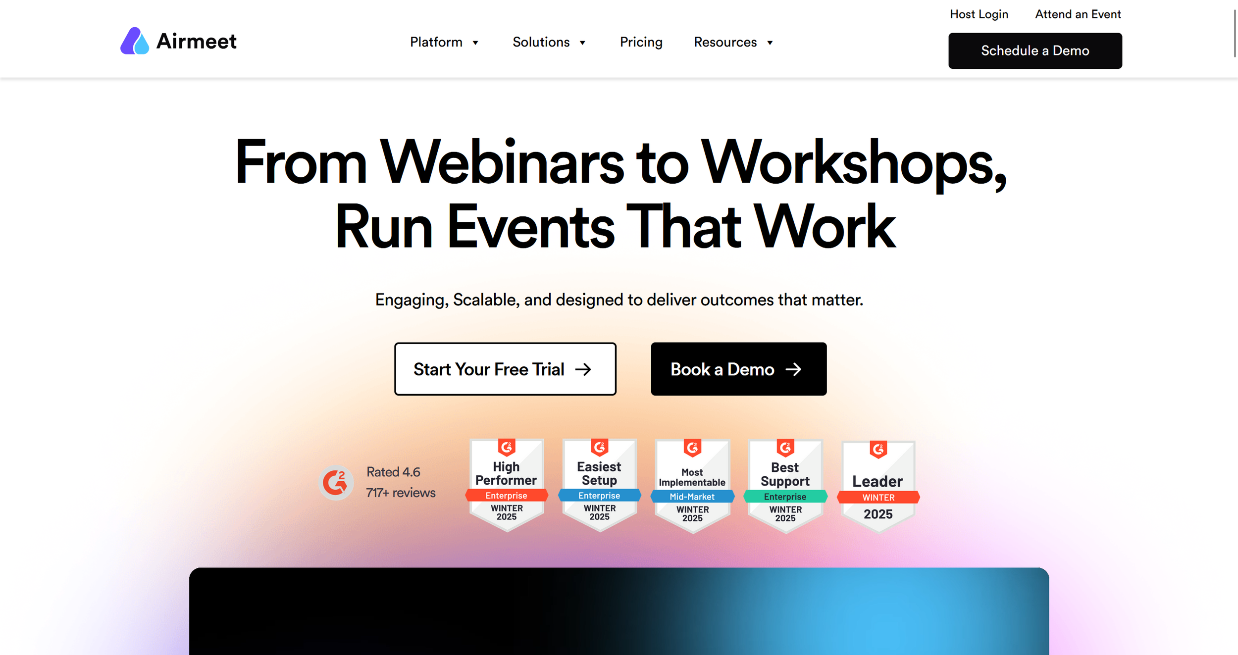 Airmeet ist eine All-in-One-Plattform für virtuelle und hybride Events, die sich besonders für interaktive Formate eignet. Ob Webinare, Community-Treffen oder Online-Konferenzen – Airmeet bietet dir Tools, um deine Veranstaltungen nicht nur zu streamen, sondern aktiv zu gestalten. Besonders hervorzuheben sind die Networking-Funktionen, die es ermöglichen, Teilnehmer miteinander in Kontakt zu bringen.