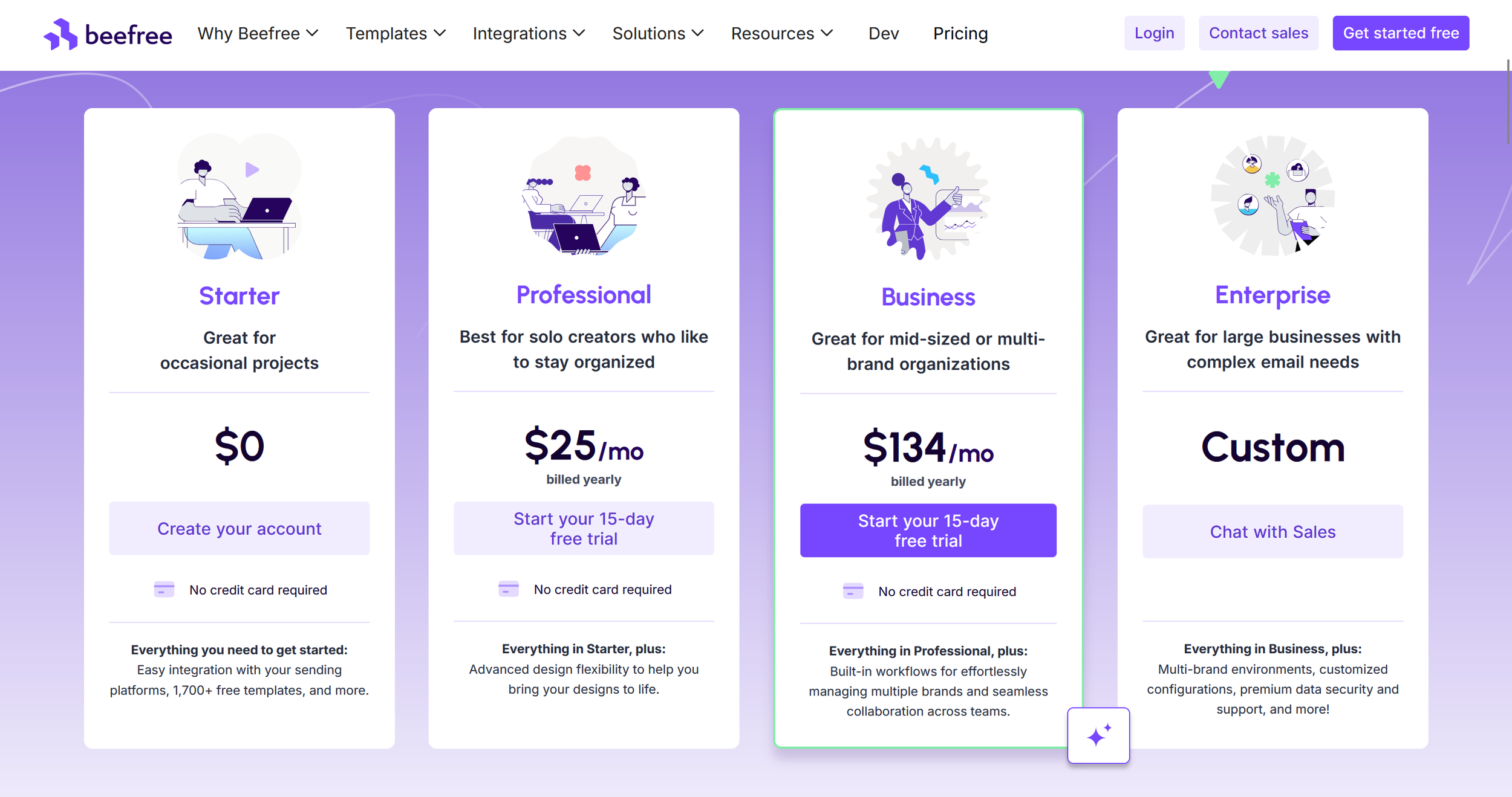 Ein großer Vorteil von BeeFree ist seine Kosteneffizienz. Es bietet verschiedene Preismodelle, je nach Bedarf: