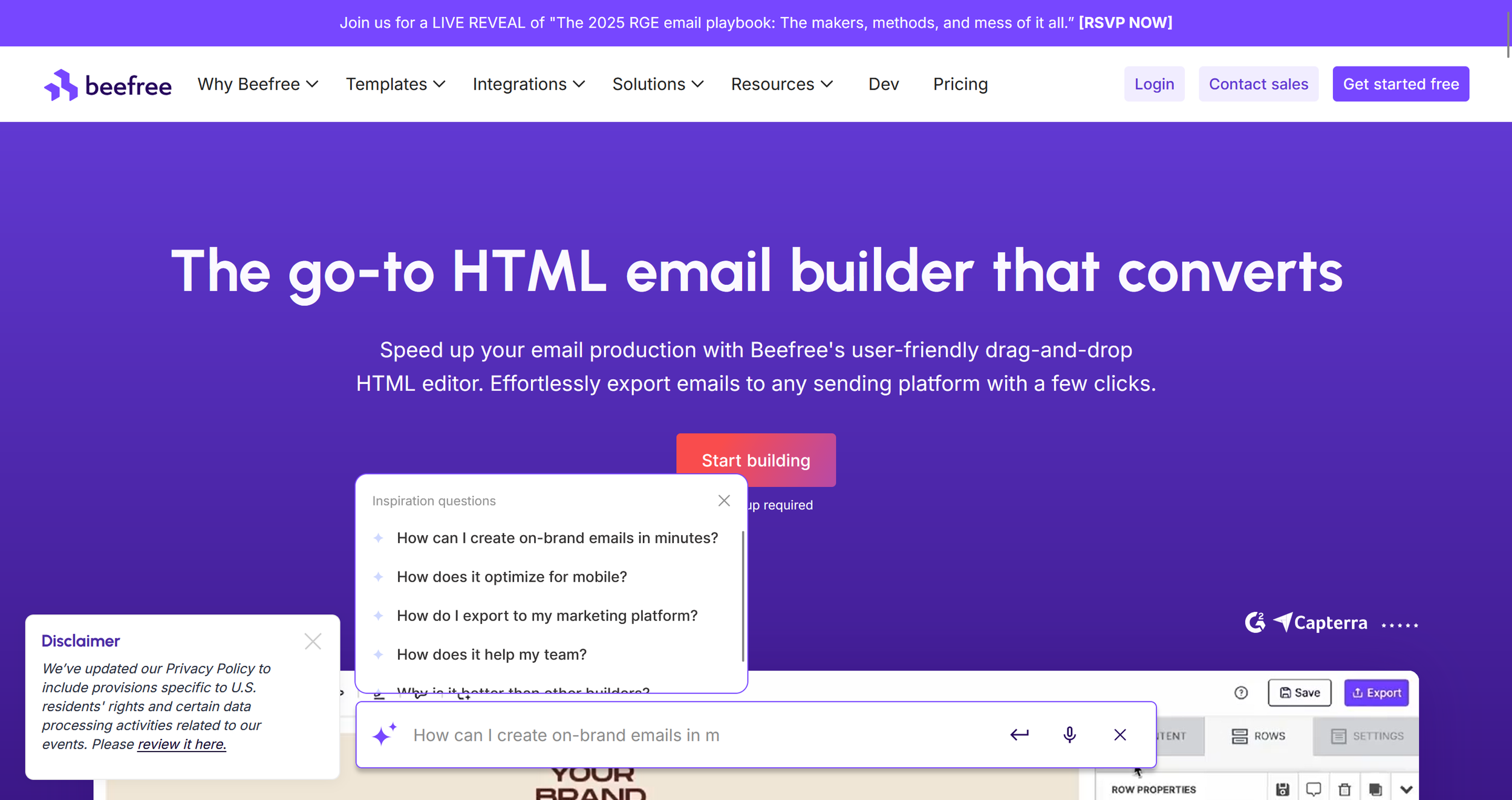 BeeFree-Landingpage (Auszug von BeeFree.io)