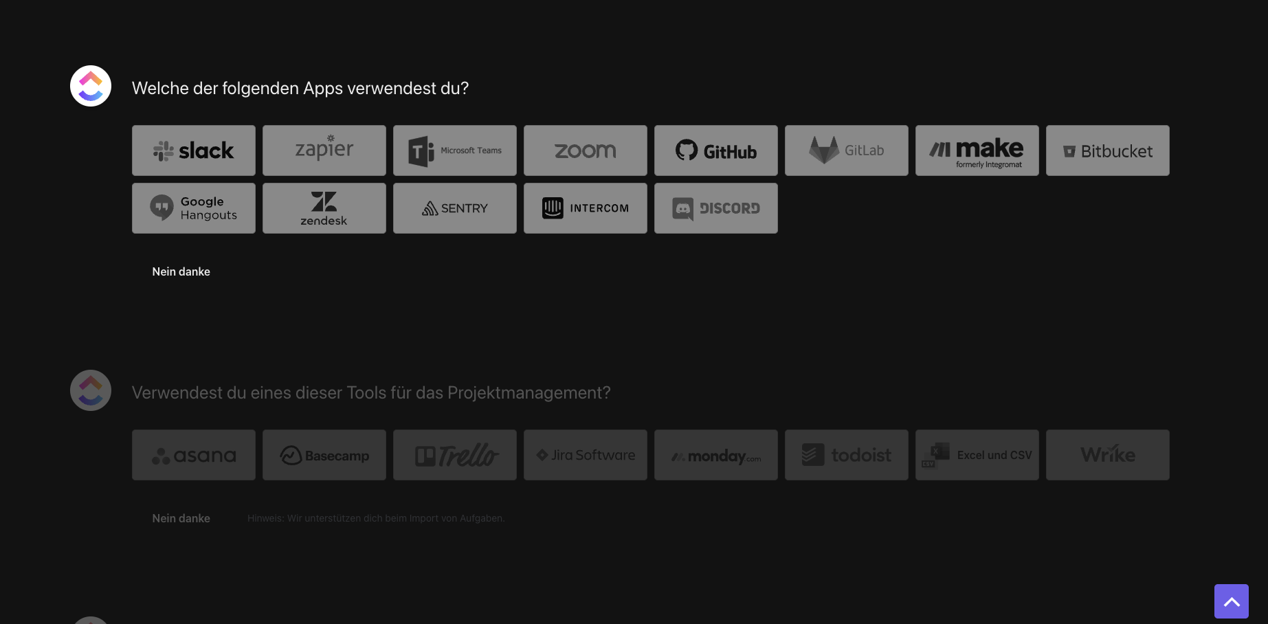 schnelle Einrichtung in ClickUp (Eigener Auszug aus ClickUp)