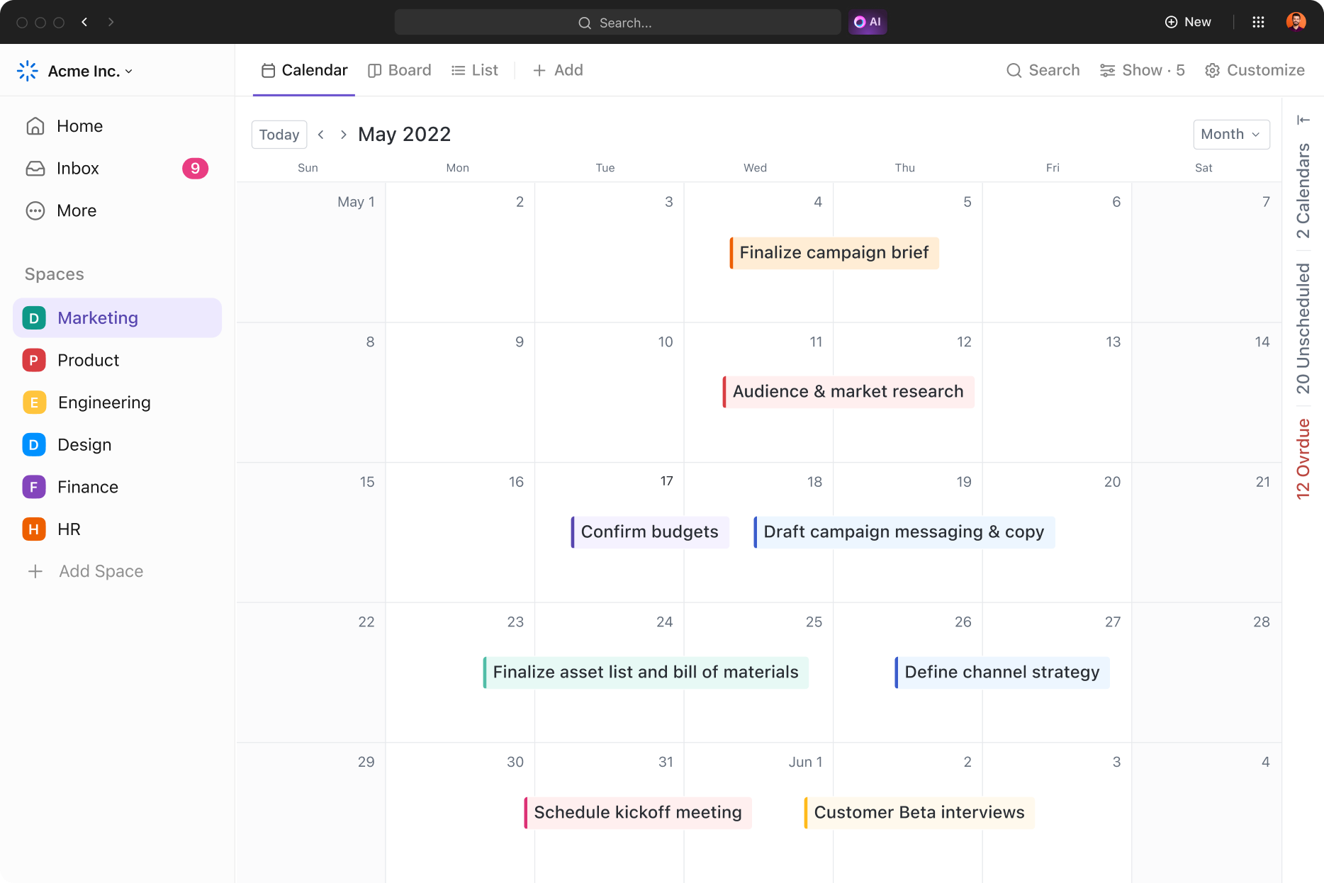 Plane deine Tasks übersichtlich im Kalender und behalte alle Deadlines teamübergreifend im Blick (Gestellt von ClickUp.com)