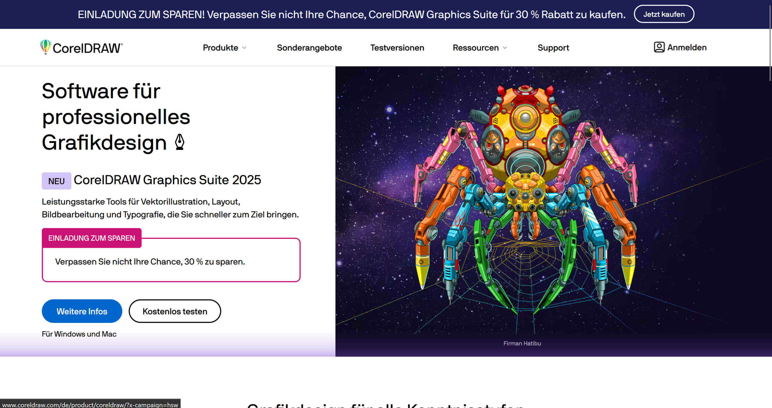 CorelDRAW-Landingpage (Auszug von coreldraw.com )