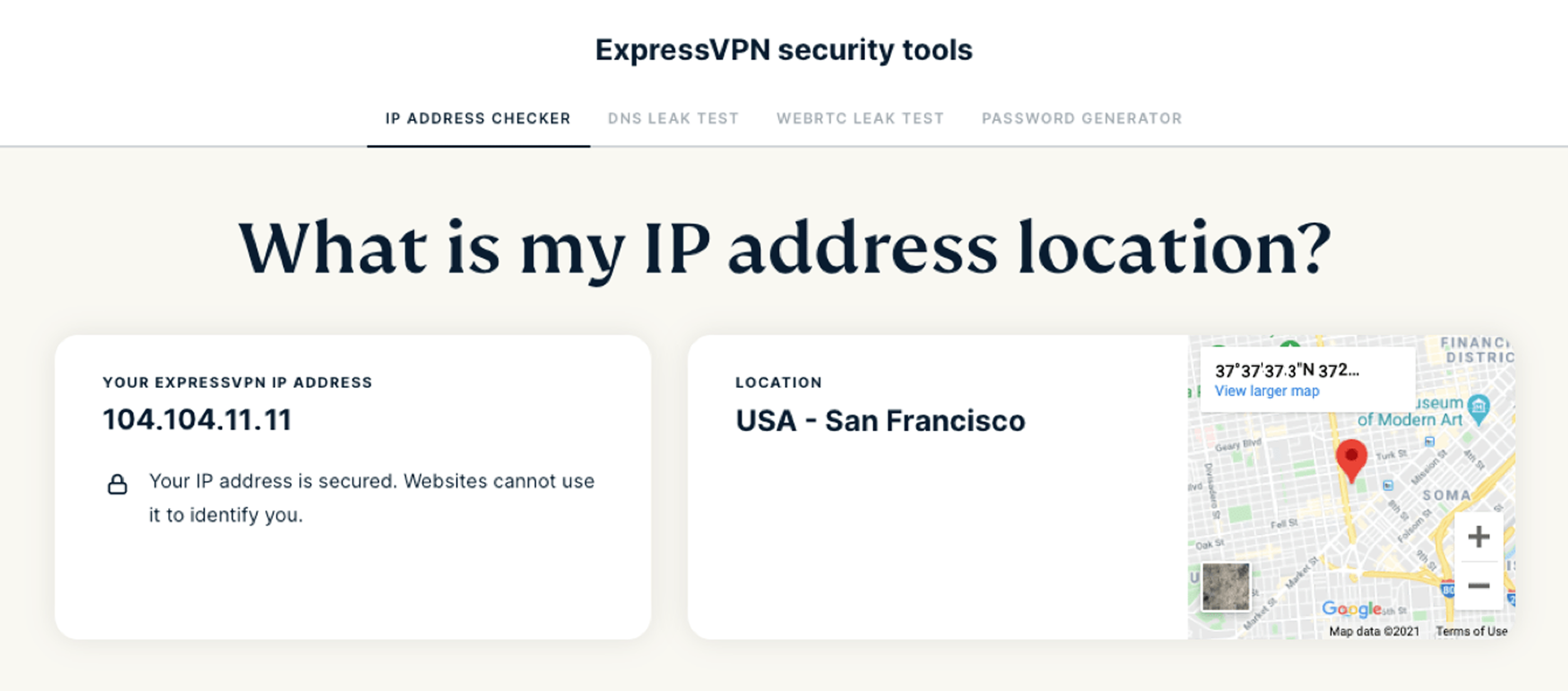 IP Checker in den ExpressVPN Sicherheitstools (Auszug von expressvpn.com)