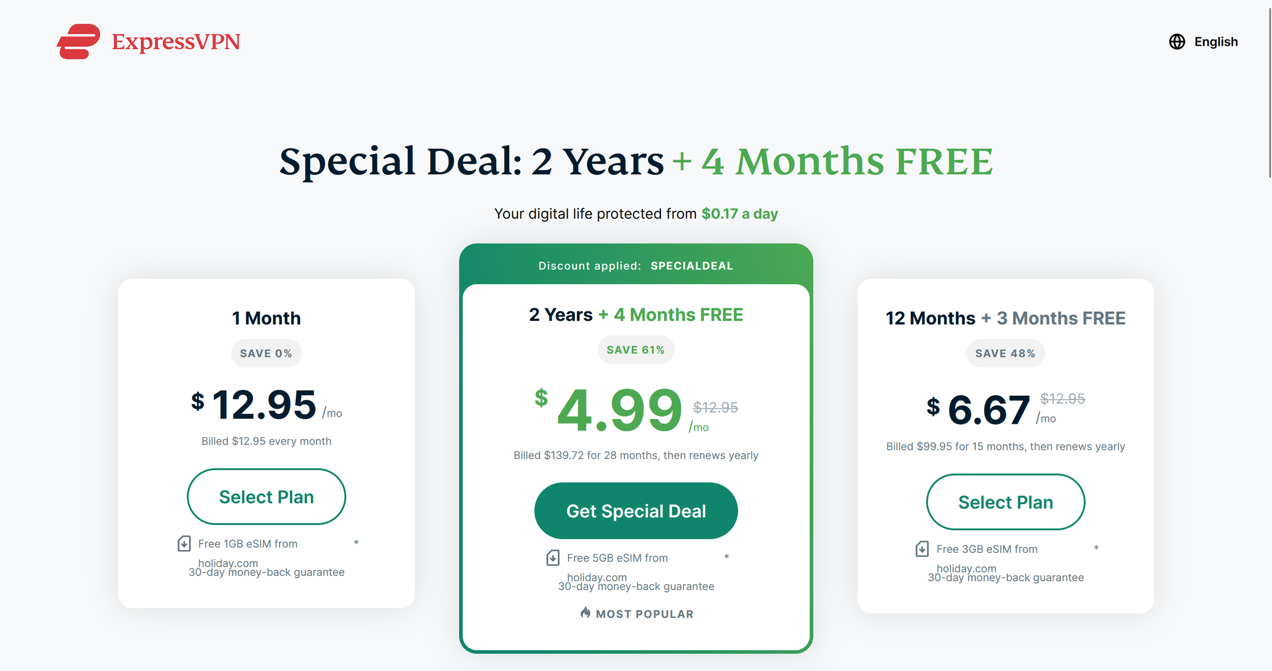 ExpressVPN Preisgestaltung (Auszug von (Auszug von expressvpn.com)