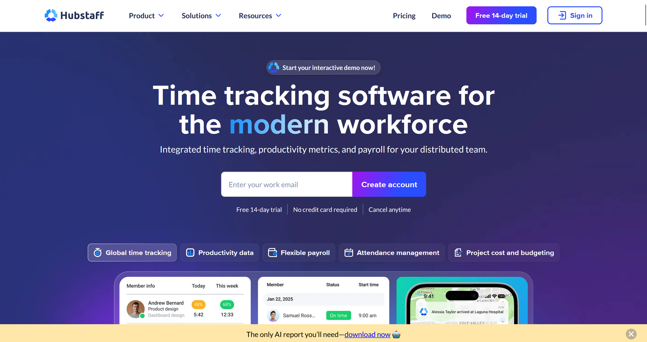 Hubstaff positioniert sich als führende Time-Tracking-Software für moderne Freelancer – mit Fokus auf Transparenz und Automatisierung. (Auszug von hubstaff.com)