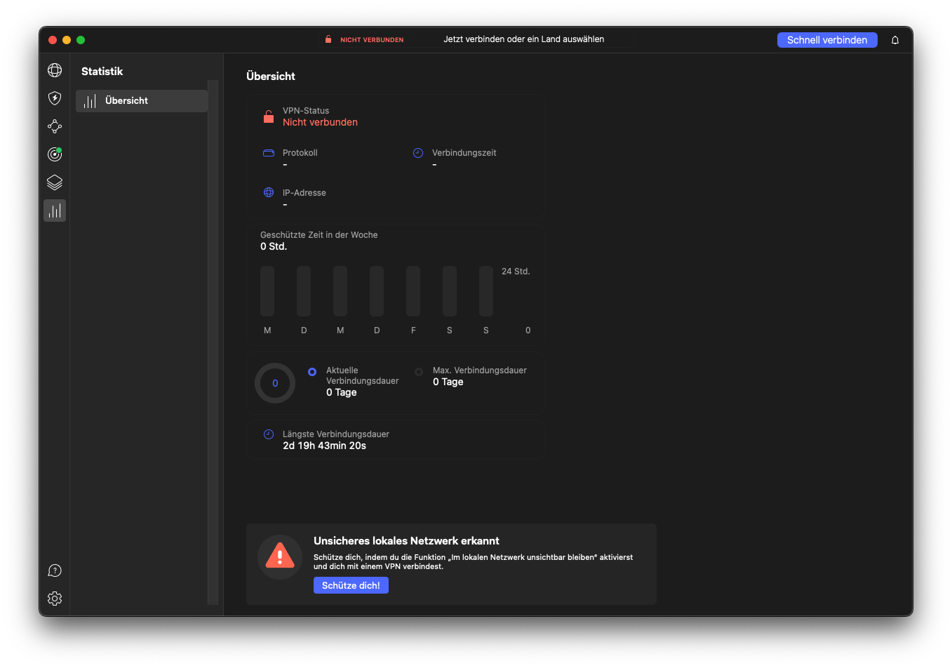 Übersichtliche Verbindungsdaten und -Statistiken (Eigener Auszug vom NordVPN Desktop-Tool)