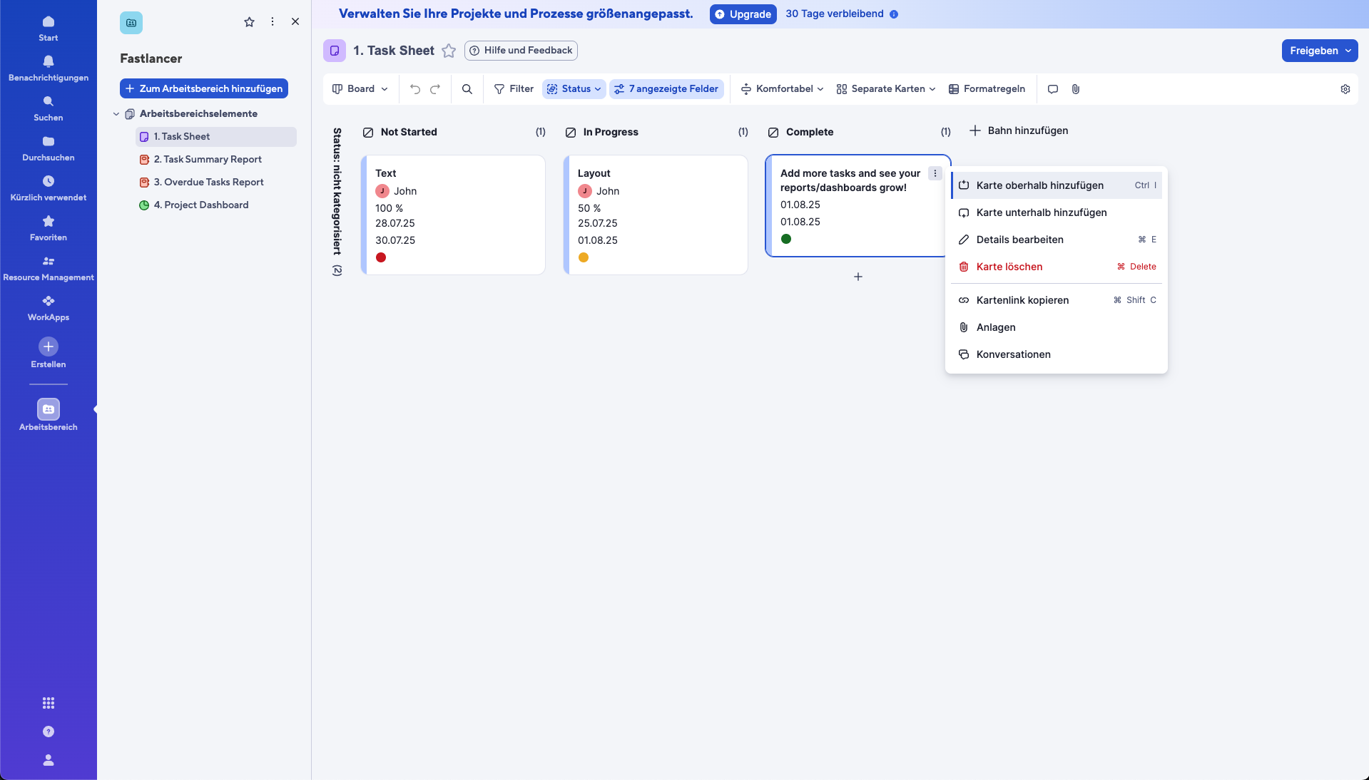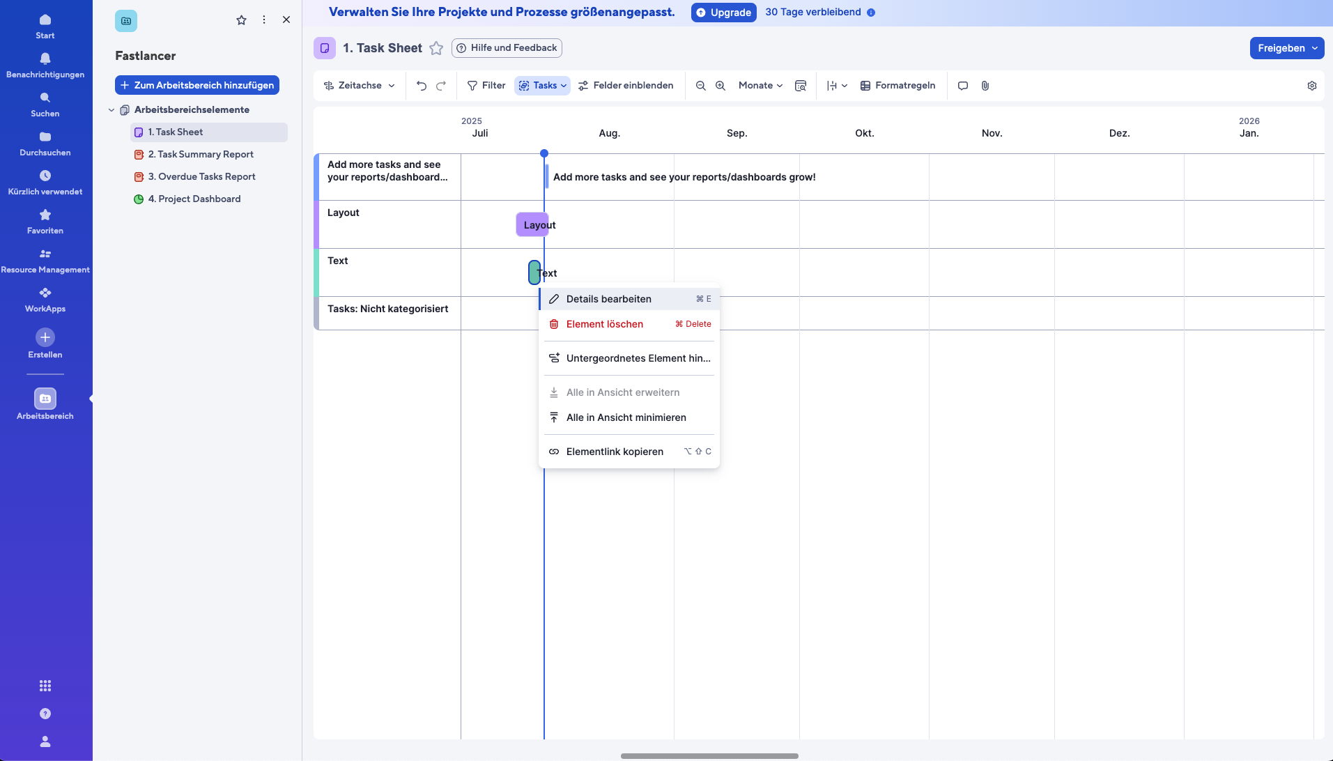 Flexibles Arbeiten: Grid-, Kanban-, Gantt- und Kalenderansichten ermöglichen es, Projekte aus verschiedenen Perspektiven zu steuern.